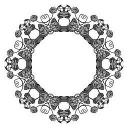 Keywords: rose floral flower flourish design decorative ornamental abstract geometric art grayscale frame black-and-white