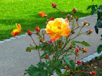 Keywords: rose flower blossom bloom wayside yellow red bud rose bud