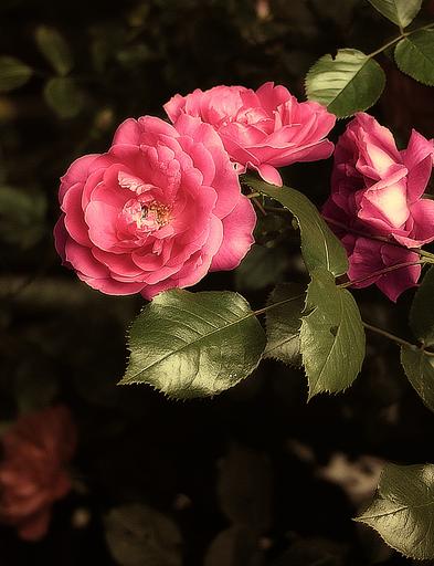 Keywords: rose flower a flower garden pink rose rosebush garden garden shrubs foliage shiny rose petals closeup figure mood plant flora the background shadow flowering full bloom