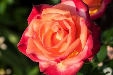 Keywords: rose flower orange red orange red blossom bloom open flower petals close garden sun sunlight summer floral photography