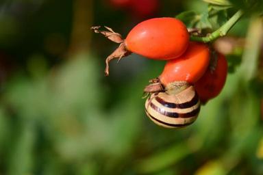 Keywords: rose hip ripe forest berry fruit plant food autumn nature bush thorns wild rose snail shell close