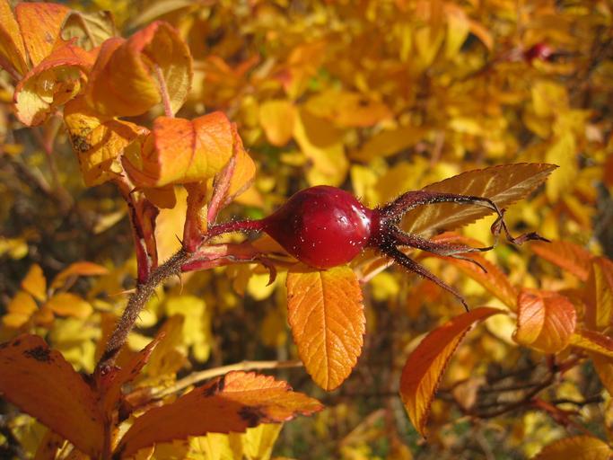 Keywords: rose hips bush orange red autumn garden