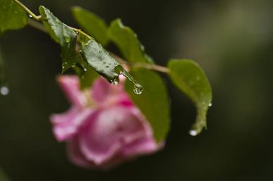 Keywords: rose leaves rain raindrop pink garden