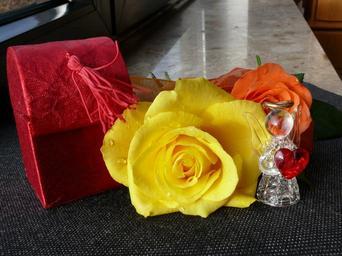 Keywords: rose loop blossom bloom roses flowers yellow nature flower box angel glass deco decorative