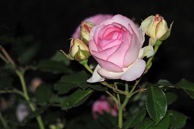 Keywords: rose night pink blossom bloom bud flower darkness