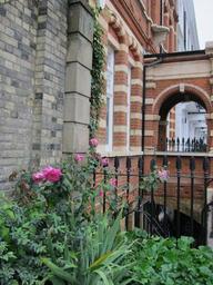 Keywords: rose pink brick row house garden building red brick iron