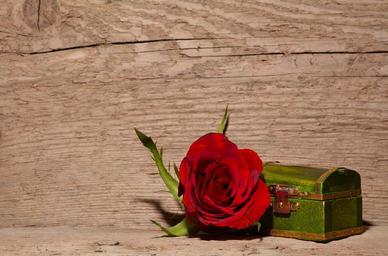Keywords: rose red flower blossom bloom treasure chest red rose deco casket treasure valuable wood