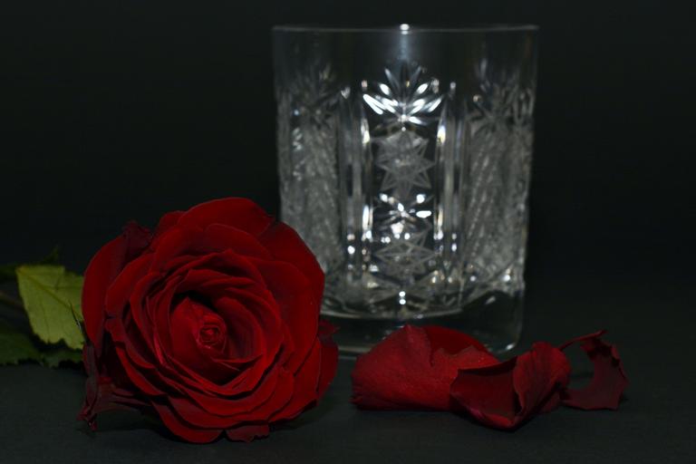 Keywords: rose red rose rose petals crystal glass crystal glass flower blossom bloom rose bloom red nature ground
