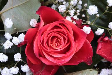 Keywords: rose rose bloom gypsophila red fragrance flower romance raindrop