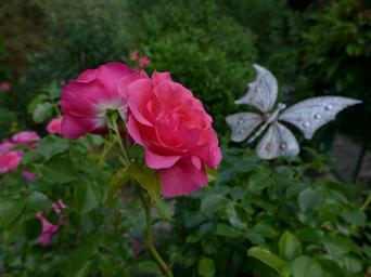 Keywords: rose rose flower flowers plant garden plants flora garden decoration butterfly ambience decorative deco green pink ornamental plant summer flower nature roses rose bloom rosebush bed of roses