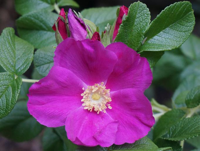 Keywords: rose rugosa rose with buds bud flower blossom bloom leaves garden nature plant