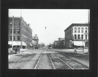 | Keywords: kalamazoo history public library photography roads street-cars streetcars storefronts wagons michigan photo border blackandwhite outdoor architecture black and white Rose Street, north from Main, Kalamazoo, 1890-92. Both sides of Rose Street north from Main. KPL catalogue number P-204 Rose Street, north from Main, Kalamazoo, 1890-92. Both sides of Rose Street north from Main. KPL catalogue number P-204 | ||||