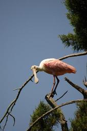Keywords: roseate spoonbill bird wildlife tree big nature perched looking feather tropical