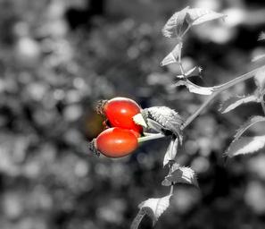 Keywords: rosehip berries red berries wild autumn nature forest red plants fruit fruits of the forest leaves autumn leaves autumn forest partial color