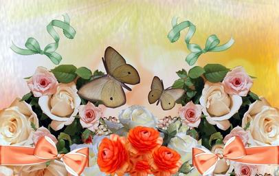 Keywords: roses butterflies bows flowers flower arrangement