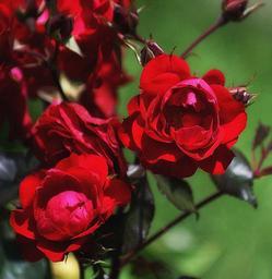 Keywords: roses flowers bouquet composition decoration nature flora plant flowering red a bright red roses green background summer rose petals the buds of roses