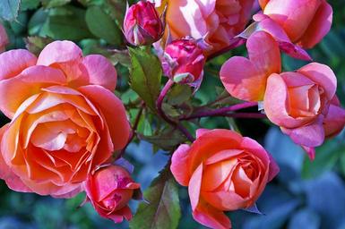 Keywords: roses garden rose westerland shrub rose flowers nature orange beautiful flower bloom beautiful color flora romantic summer colorful background thorns plant flower bed branches leaves healthy bud petals garden bright