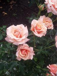 Keywords: roses pink blossoms blooms blooming leaves green leafy background lighter fleurs rose gardens gardening romantic fresh flowering plants ornamental gardens floral delicate soft buds dew drops