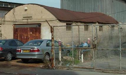 Keywords: Rosh gag matehet.jpg A workshop with an iron roof At the Avoda street 2009-12-24 own assumed ShlomoKatzav Rosh Ha'Ayin industrial area British mandate architecture in Israel Fences in Israel