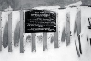 | Keywords: blackandwhite monochrome black and white Ross Island-Antarctica-1: Plaque which the New Zealand Government placed outside the main door of Scott’s Hut at Cape Evans, Ross Island, Antarctica. The New Zealand government has restored this famous historic hut in the summer of 1960 as a lasting memorial for the pioneer explorers of the Antarctic. Photograph released April 21, 1961. NHHC Photograph Section, Navy Subject File, Places. (2015/10/30). Ross Island-Antarctica-1: Plaque which the New Zealand Government placed outside the main door of Scott’s Hut at Cape Evans, Ross Island, Antarctica. The New Zealand government has restored this famous historic hut in the summer of 1960 as a lasting memorial for the pioneer explorers of the Antarctic. Photograph released April 21, 1961. NHHC Photograph Section, Navy Subject File, Places. (2015/10/30). |