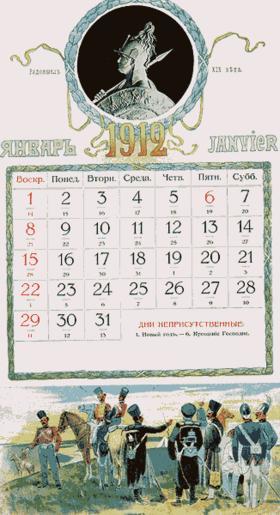 | Keywords: Rossijskij kalendarj na janvarj 1912 goda.gif en Russian calendar 1912 jan ru Российский календа ь на янва ь 1912 года еизвестное издательство 1912 PD-old Check categories 2009 July 23 ru wikipedia Исто ия_п аздников_России Россия 1 Holidays |
