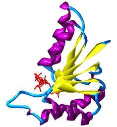 Keywords: Rossman fold.png en Structure of the Rossmann fold found in Cryptosporidium parvum lactate dehydrogenase NAD+ bound shown in red Created from PDB 2FM3 Own TimVickers Protein domains