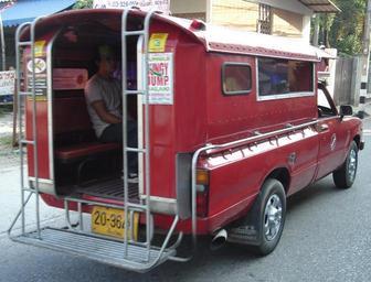 | Keywords: Rot daeng Chiang Mai 2.jpg songthaews the latter known locally as rot daeng literally red car - Chiang Mai Thailand รถสองแถว / รถแดง - ชียงใหม่ Own 2007-12-03 Love Krittaya Songthaews in Chiang Mai Toyota HiLux N30/N40 User Love Krittaya took pictures at Chiang Mai |