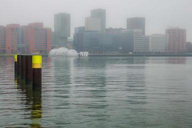 Keywords: rotterdam rijnhaven water mooring buildings view foggy
