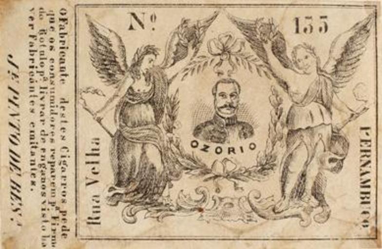 Keywords: Rótulo de cigarro. Manuel Luiz Osório.JPG Rótulo de cigarro Manuel Luís Osório Fundação Joaquim Nabuco http //www dominiopublico gov br/pesquisa/DetalheObraForm do select_action co_obra 19267 unknown author PD-old A coleção Brito Alves é composta de 1 252 rótulos de cigarros na técnica litográfica Foi iniciada pelo comerciante Vicente de Brito Alves e continuada pelo seu filho o advogado pernambucano José de Brito Alves 1887-1963 Em 1964 a coleção foi doada pela família ao então Instituto Joaquim Nabuco de Pesquisas Sociais Constitui-se em um raro e valioso patrimônio cultural e artístico registrando fatos históricos usos costumes e aspectos da vida cultural da sociedade brasileira e particularmente da pernambucana no final do século XIX até as primeiras décadas do século XX Manuel Luís Osório Cigarette cards |