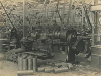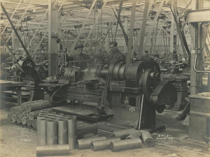 | Keywords: ww1 first world war firstworldwar national projectile factory nationalprojectilefactory birtley birtley belgians birtleybelgians social history socialhistory sir w.g. armstrong whitworth & co. ltd sirwgarmstrongwhitworthcoltd shell manufacture shellmanufacture elisabethville machinery gun shells gunshells black and white photograph blackandwhitephotograph industrial heritage industrialheritage blet steel metal belt machine cylinder symbol number dust particles debris shell body shellbody rough turning roughturning 14 june 1916 14june1916 gateshead factory operational belgian workers belgianworkers belgium north east of england northeastofengland label handle wheel beam ceiling pipe cap blazer coat shirt moustache clean shaven cleanshaven hand grip concentration comradeship uniform pattern steam ladder bolt wall plate table platform intricate hole opening arrow letters numbers men male unusual industry outdoor black and white Rough turning the shell body at the National Projectile Factory, Birtley 14 June 1916 (TWAM ref. 1027/271). These images belong to an album of photographs taken in the National Projectile Factory, Birtley (near Gateshead) during the First World War. The photographs were taken by Sir W.G. Armstrong Whitworth & Co Ltd, who built the factory. The images date from June 1916, shortly after the factory became operational. What makes the factory (and these photographs of it) so special is that all the management and workers there were Belgian. The factory and the nearby village of Elisabethville (built to accommodate them) were like a little corner of Belgium transplanted to the North East of England. More information about the factory and the village of Elisabethville can be found in the blog, which accompanies this set. (Copyright) We're happy for you to share these digital images within the spirit of The Commons. Please cite 'Tyne & Wear Archives & Museums' when reusing. Certain restrictions on high quality reproductions and commercial use of the original physical version apply though; if you're unsure please email archives@twmuseums.org.uk Rough turning the shell body at the National Projectile Factory, Birtley 14 June 1916 (TWAM ref. 1027/271). These images belong to an album of photographs taken in the National Projectile Factory, Birtley (near Gateshead) during the First World War. The photographs were taken by Sir W.G. Armstrong Whitworth & Co Ltd, who built the factory. The images date from June 1916, shortly after the factory became operational. What makes the factory (and these photographs of it) so special is that all the management and workers there were Belgian. The factory and the nearby village of Elisabethville (built to accommodate them) were like a little corner of Belgium transplanted to the North East of England. More information about the factory and the village of Elisabethville can be found in the blog, which accompanies this set. (Copyright) We're happy for you to share these digital images within the spirit of The Commons. Please cite 'Tyne & Wear Archives & Museums' when reusing. Certain restrictions on high quality reproductions and commercial use of the original physical version apply though; if you're unsure please email archives@twmuseums.org.uk |