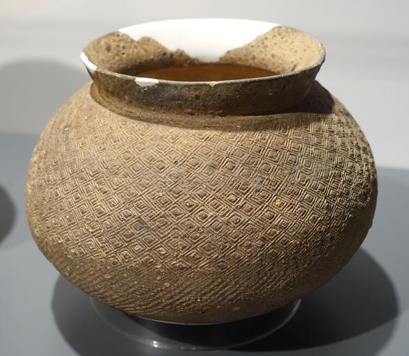 | Keywords: Round-bottomed pottery pot with lozenge pattern, Bronze period, from M74, the pre-Qin graveyard, Hengling Shan, Boluo - Hong Kong Museum of History - DSC00762.JPG en Exhibit in the Hong Kong Museum of History Hong Kong This artwork is old enough so that it is in the public domain Photography was permitted in the museum without restriction 2014-07-27 01 29 57 own Daderot other versions PD-100 cc-zero Chinese ceramics in the Hong Kong Museum of History Uploaded with UploadWizard Ceramics of the Bronze Age in China |