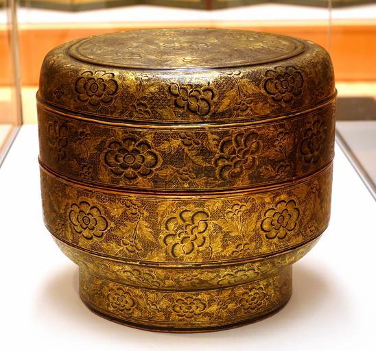 Keywords: Round food box on high foot ring (jikiro) with design of peonies, Ryukyu Islands, 16th-17th century AD, red and black lacquer with chinkin on wood - Ethnological Museum, Berlin - DSC02082.JPG en Exhibit in the Ethnological Museum Berlin Germany Photography was permitted in the museum without restriction 2014-11-11 10 59 39 own Daderot other versions cc-zero Lacquerware of the Ryukyu Kingdom in the Ethnological Museum Berlin Uploaded with UploadWizard |