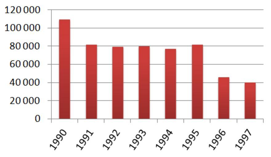 | Keywords: Rover Metro - Rover 100 production.png it Grafico che mostra la produzione di Rover Metro / Rover 100 dal 1990 al 1997 Il dato per il 1990 include la produzione di Austin/MG Metro en Chart showing Rover Metro / Rover 100 production from 1990 to 1997 1990 figure includes Austin/MG Metro production 2012-06-09 own based on http //www aronline co uk/blogs/2011/08/25/history-production-figures/ aronline co uk figures Alessandro Antonelli Austin-MG Metro Rover Metro Rover 100 production png Austin Metro - MG Metro production png wikitable + Figures Year Production - 1990 109605 - 1991 81422 - 1992 79600 - 1993 79677 - 1994 76821 - 1995 81782 - 1996 46118 - 1997 40199 Bar charts cc-zero Uploaded with UploadWizard Rover 100 / Metro |