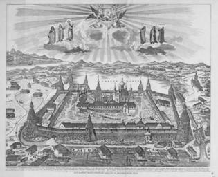 Keywords: Rovinsky - Solovetsky monastery 1884 - 17.jpg ru Большой вид Соловецкого монасты я с 6-ю святыми в облаках