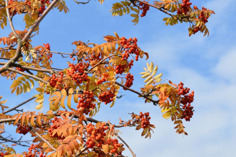 Keywords: rowan rowan berries autumn clusters bright fruit berry red orange berries september october clusters of rowan orange plant sky nature garden day