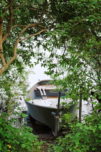 Keywords: rowing boat trees green water lake boot nature bank mood idyll waters