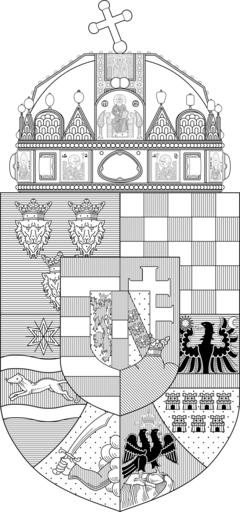 Keywords: Royal coat of arms of the Kingdom of Hungary (1915-1918; monochrome).svg royal coat of arms of the Kingdom of Hungary from 6 November 1915 to 29 November 1918 Magyar Királyság uralkodói címere 1915 november 6 és 1918 november 29 között vonalkázott változat 2014-06-04 23 53 41 own cite web Dékány Szilveszter IV Károly koronázási hitlevele http //mnl gov hu/a_het_dokumentuma/iv _karoly_koronazasi_hitlevele html Magyar Nemzeti Levéltár 4 June 2014 Coat of arms of the Lands of the Holy Hungarian Crown 1915-1918 1919-1946; monochrome svg Imperial Coat of Arms of the Empire of Austria svg Sodacan Thommy <gallery> File Royal coat of arms of the Kingdom of Hungary 1915-1918 svg File Royal coat of arms of the Kingdom of Hungary 1915-1918; angels svg </gallery> <gallery> File Royal coat of arms of the Kingdom of Hungary 1915-1918; monochrome svg File Royal coat of arms of the Kingdom of Hungary 1915-1918; angels; monochrome svg </gallery> cc-zero PD-Hungary Insignia Uploaded with UploadWizard 1 six rays gules in heraldry Armorial achievements of Hungary Coats of arms of the Kingdom of Hungary Chequy argent and gules Coats of arms of Franz Joseph I of Austria Coats of arms of Karl I of Austria Crosses argent Heraldic Holy Crown of Hungary Hungary Ancient impaling Hungary Moderne in pretence Lorraine and patriarchal crosses in heraldry Marshalled Bosnia Marshalled Croatia Marshalled Dalmatia Marshalled House of Habsburg-Lorraine Marshalled Rijeka Marshalled Slavonia Marshalled Transyilvania Pine martens in heraldry State coats of arms of Transleithania SVG coats of arms of Hungary Triple mountains vert |