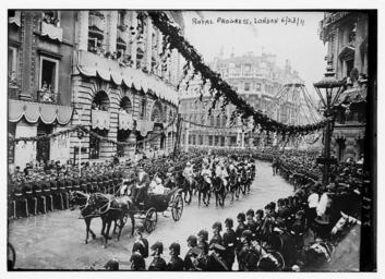 | Keywords: Royal Progress, 1911 (LOC).jpg Bain News Service publisher Royal Progress 1911 1911 date created or published later by Bain 1 negative glass ; 5 x 7 in or smaller Notes Title from unverified data provided by the Bain News Service on the negatives or caption cards Forms part of George Grantham Bain Collection Library of Congress Format Glass negatives Rights Info No known restrictions on publication Repository Library of Congress Prints and Photographs Division Washington D C 20540 USA http //hdl loc gov/loc pnp/pp print hdl loc gov/loc pnp/pp print General information about the Bain Collection is available at http //hdl loc gov/loc pnp/pp ggbain hdl loc gov/loc pnp/pp ggbain Higher resolution image is available Persistent URL http //hdl loc gov/loc pnp/ggbain 09603 hdl loc gov/loc pnp/ggbain 09603 Call Number LC-B2- 2269-15 https //www flickr com/photos/library_of_congress/2162897317/ Royal Progress 1911 LOC LOC-image ggbain 09603 https //www flickr com/people/8623220 N02 The Library of Congress http //www loc gov/rr/print/195_copr html noknown The Library of Congress Flickr Commons PD-Bain The Library of Congress https //flickr com/photos/8623220 N02/2162897317 2015-08-05 18 52 53 pd Celebrations of the coronation of George V |