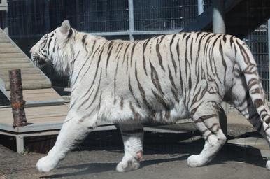 | Keywords: Panthera tigris tigris. CC0 waiver: To the extent possible under law, I waive all copyright and related or neighboring rights to this work. Panthera tigris tigris. CC0 waiver: To the extent possible under law, I waive all copyright and related or neighboring rights to this work. Royal White Bengal Tiger walking profile at Cougar Mountain Zoological Park.jpg en Profile portrait of a Royal White Bengal Tiger walking in its cage at Cougar Mountain Zoo Own Dcoetzee 2009-07-03 15 27 32 47 33 11 N 122 4 49 W region US cc-zero White tigers at Cougar Mountain Zoo Side views of animals Walking animals Panthera tigris tigris. CC0 waiver: To the extent possible under law, I waive all copyright and related or neighboring rights to this work. |