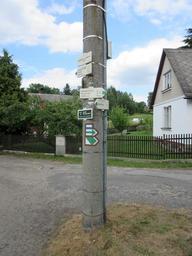 Keywords: Rozcestník Sloup ke hřbitovu.JPG cs Rozcestník v obci Sloup ke hřbitovu na rozcestí ulic Potoční a Hřbitovní own Zákupák 2015-07-23 Hiking and footpath fingerposts in Sloup v Čechách Hřbitovní Sloup v Čechách Potoční Sloup v Čechách
