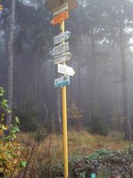Keywords: Rozcestník Stožecké sedlo.JPG cs Rozcestník východně od silníce I/9 a Stožeckého sedla katastr Dolní Podluží own Zákupák 2012-10-21 Hiking and footpath fingerposts in Děčín District Dolní Podluží Lusatian Mountains