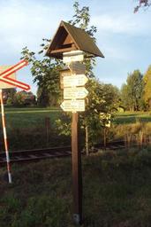 Keywords: Rozcestník Zahrady.JPG cs Turistický rozcestník v obci Zahrady own Zákupák 2013-09-08 Zahrady Hiking and footpath fingerposts in Děčín District Köglerova naučná stezka