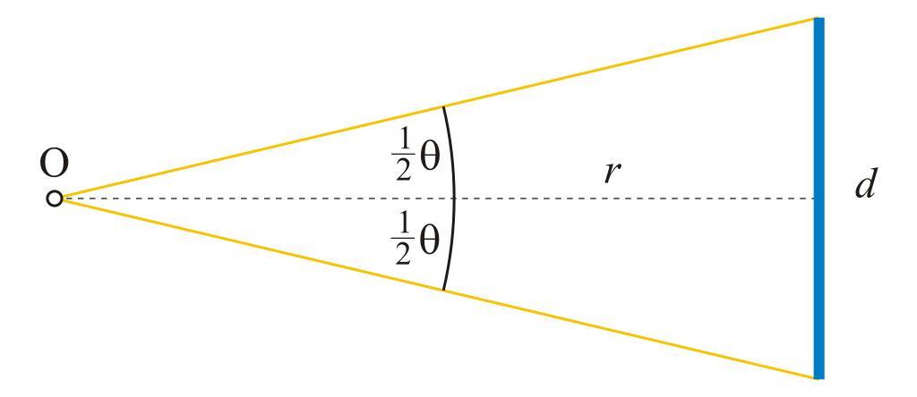 Keywords: Rozk1.svg en Angular diameter - to derive of equation pl Rozmiar kątowy - do wyprowadzenia wzoru own Mpfiz Angular diameter diagrams