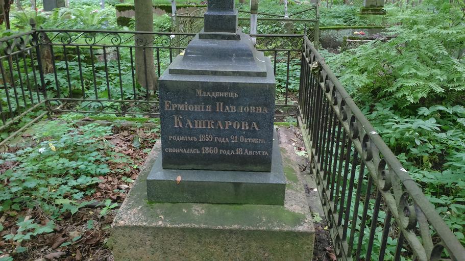 Keywords: Ru-Kashkar-EP.jpg Art Photo en Kashkarova E P burial at the Smolensk Orthodox cemetery ru Захо онение Кашка овой Е П доче и Кашка овой Е С у Да гомыжская на Смоленском п авославном кладбище 1860 stone Russia Saint-Petersburg Smolensk Orthodox Cemetery object history exhibition history credit line accession number artwork license PD-Russia photo date 2016-06-29 Dj-2 own photo license cc-by-sa-4 0 Smolensk Orthodox cemetery |