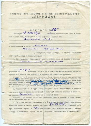 Keywords: Ru-Lenizdat-dog-first-page.jpg ru Пе вая ст аница догово а 395 от 13 10 1956 года издательства Лениздат заключённого с авто ом ленинг адским поэтом иколаем Ивановичем аковым на издание стихов для маленьких книга Забавные исто ии 1956-10-13 Own archive Not applicable PD-RU-exempt Uploaded with UploadWizard Nikolai Ivanovich Makov |
