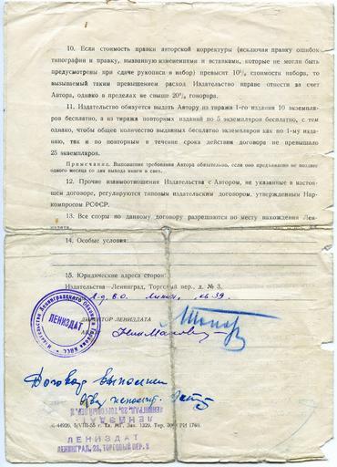 Keywords: Ru-Lenizdat-dog-last-page.jpg ru Последняя ст аница догово а 395 от 13 10 1956 года издательства Лениздат заключённого с авто ом ленинг адским поэтом иколаем Ивановичем аковым на издание стихов для маленьких книга Забавные исто ии с подписью авто а ди екто а издательства Леонида Васильевича Попова и печатью Издательства 1956-10-13 Own archive Not applicable PD-RU-exempt Nikolai Ivanovich Makov Uploaded with UploadWizard |