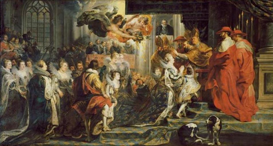 | Keywords: Rubens - Couronnement de Marie de Médicis le 13 mai 1610.jpg Artwork creator Peter Paul Rubens Couronnement de Marie de Médicis le 13 mai 1610 Gemäldezyklus für Maria de' Medici Königin von Frankreich Szene Krönung Maria de' Medicis in St Denis in Paris oil on canvas m 3 94 7 27 Museum Louvre appartient à la suite de vingt-quatre tableaux illustrant la vie de Marie de Médicis commandés par Marie de Médicis en 1620 pour l'une des deux galeries de son palais du Luxembourg à Paris et exécutés de 1621 à 1625 ; numéros d'inventaire des autres éléments inv 1769 à inv 1777 inv 1779 à inv 1792 Historienmalerei Auftraggeberin Maria de' Medici urspr für die Galerie im Palais de Luxembourg in Paris 21 Gemälde zum Leben der Königin Pendant zur geplanten Galerie zum Leben Heinrich des IV die nur teilweise ausgeführt wurde 000PE008774 http //www photo rmn fr/cf/htm/CSearchZ aspx o Total 7 FP 498941 E 2K1KTSGRK00XX SID 2K1KTSGRK00XX New T Pic 2 SubE 2C6NU0HSYPIM www photo rmn fr ; century 17 um 1622-1625 c 1622-1625 Other versions 180px http //mail wikipedia org/pipermail/wikide-l/2005-April/012195 html PD-old-100 PD-old files by User Jimmy from fr wikipedia Coronations in France Ceremonial clothing Marie de' Medici cycle 13 Detail Ermine clothing in art François de Joyeuse Pierre de Gondi 1532-1616 François d'Escoubleau de Sourdis Dogs in art 1610 in France Paris in the 1610s 13 May 17th-century people of Paris Paintings by Peter Paul Rubens in the Louvre |