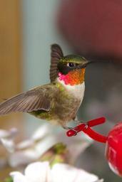 Keywords: Ruby-throated hummingbird on feeder 01.jpg 47 119 -88 580 en A ruby-throated hummingbird Archilochus colubris on a feeder 2012-06-03 own Scottk cc-zero Uploaded with UploadWizard Archilochus colubris male