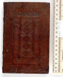 | Keywords: Rudimenta cosmographica - Upper cover (Davis589).jpg Style Lettered cover eg intitals titles Panel design Single tools design Floral Thistle; Caption Upper cover; Colour Brown; Edge Plain exhibition history Decorative Technique Tooled in blind Tooled in gold Tooled in silver; Cover Material Goatskin includes morocco turkey etc Made in Lower Austria or Switzerland May be bound in hair sheep Ink ms notes various including Abraham Iorger Two raised bands on spine no endbands object history Text 1548; Zurich; Unspecified object type Cc-zero place of creation Binding Switzerland place of discovery M M Foot The Henry Davis Gift Vol III London 2010 British Library image http //www bl uk/catalogues/bookbindings/LargeImage aspx RecordId 020-000004308 ImageId ImageId 41759 Copyright BL Rudimenta cosmographica Uploaded with GWToolset Rudimenta cosmographica - Upper cover Davis589 http //www webarchive org uk/bldatasets/bindings/6303_4 jpg Bookbinding 16th-century bookbinding British Library Bookbindings |
