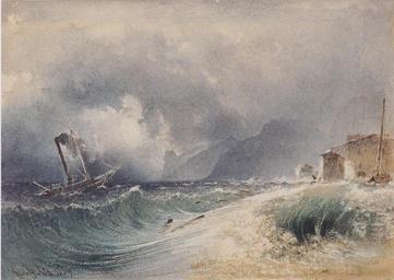 | Keywords: Rudolf von Alt - Gewittersturm am Gardasee - 1839.jpeg Gewittersturm am Gardasee watercolor Paper 14 8 x 22 8 cm private collection repro from artbook 1839 ª Creator Rudolf von Alt ¬ PD-old-100 Other versions Italy in art by Rudolf von Alt Lake Garda in art Thunderstorms in art |